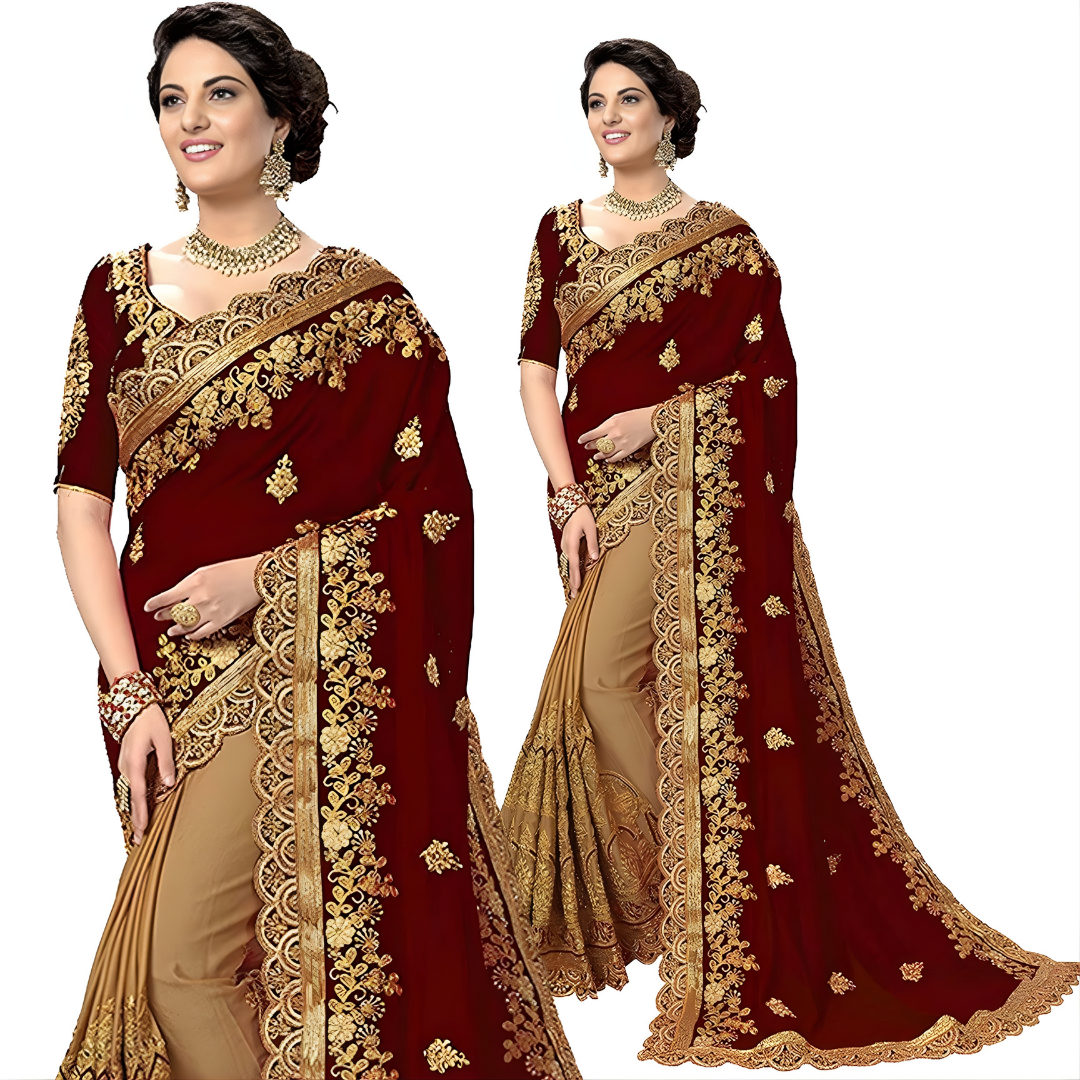 কাপড় :- সফট ওয়েটলেস জর্জেট এমব্রয়ডারি শাড়ি