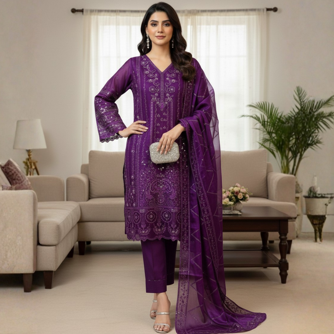ওয়েটলেস সফট জর্জেট থ্রি-পিস
