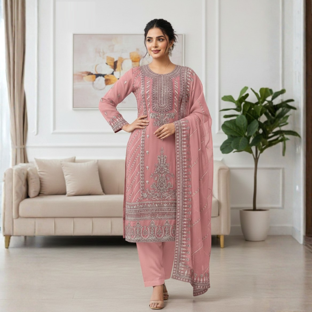 প্রিমিয়াম এমব্রয়ডারি সফট জিমিচু জর্জেট ৪-পিস